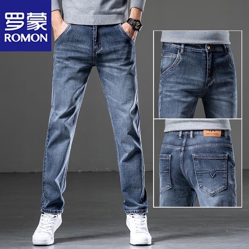 ROMON Men's Loose Straight Business Casual Jeans