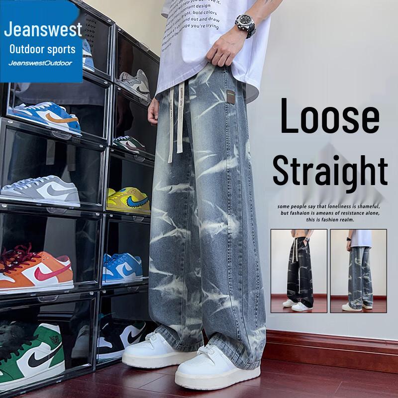 Jeanswest Men's Outdoor Casual Straight Wide-Leg Jeans
