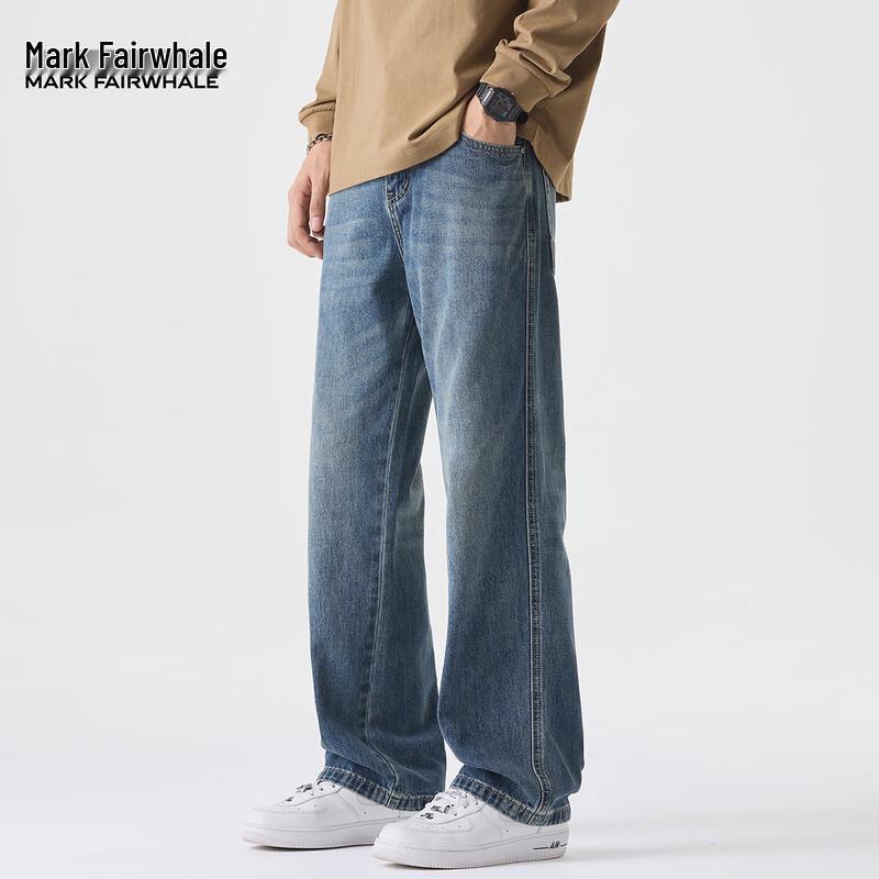 Mark Fairwhale Men's Straight Loose Fit Washed Denim Jeans