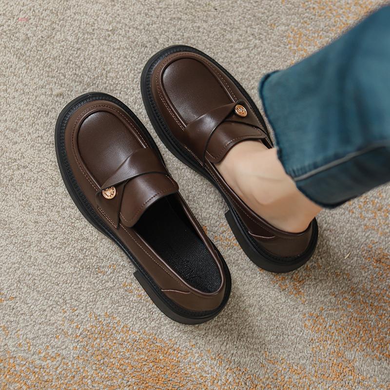 Brown Loafers Women's Spring and Autumn 2025 New Flat-bottomed Versatile Jk Single Shoes British Style Small Leather Shoes Single Shoes