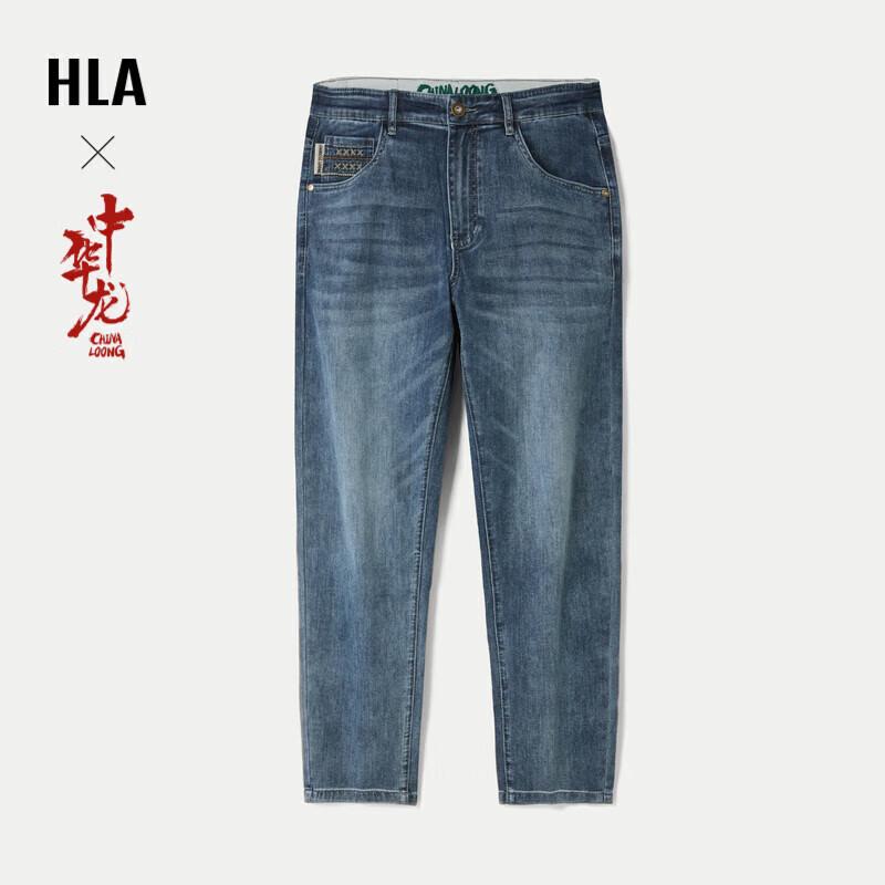 HLA Men's Mid-Waist Micro-Elastic Chinese Dragon Cropped Jeans