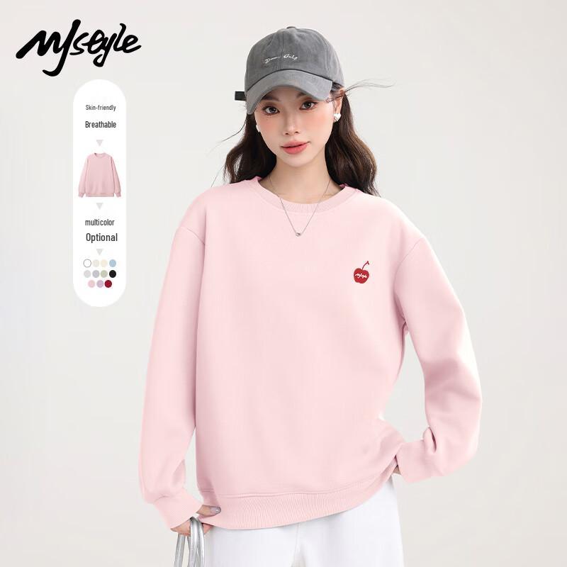 MJ STYLE Women's Milk Silk Crew Neck Long-Sleeve Sweatshirt