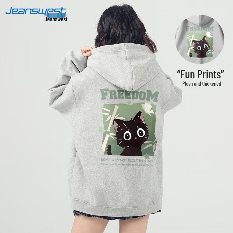 JEANSWEST 2024 Fall/Winter Fleece Lined Hooded Sweatshirt