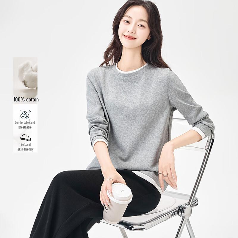 Handu Yishe Women's Faux Layered Round Neck Sweatshirt