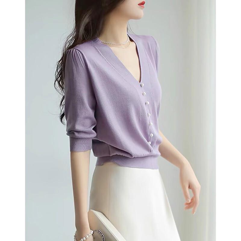 Demana Women's V-Neck 3/4 Sleeve Knit Top