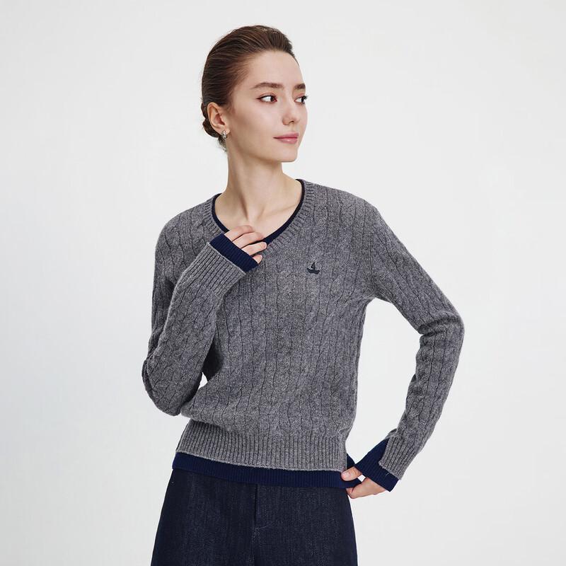 Navigare Women's Faux Two-Piece Cable Knit Long Sleeve Wool Sweater