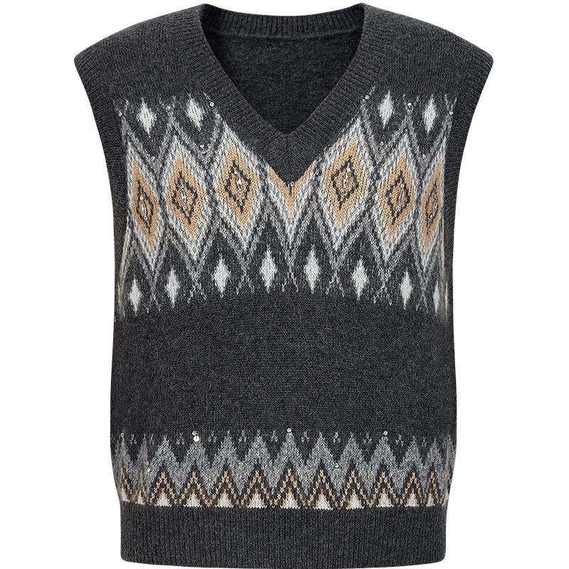ANNARKO Women's Fair Isle Jacquard Beaded Knit Vest