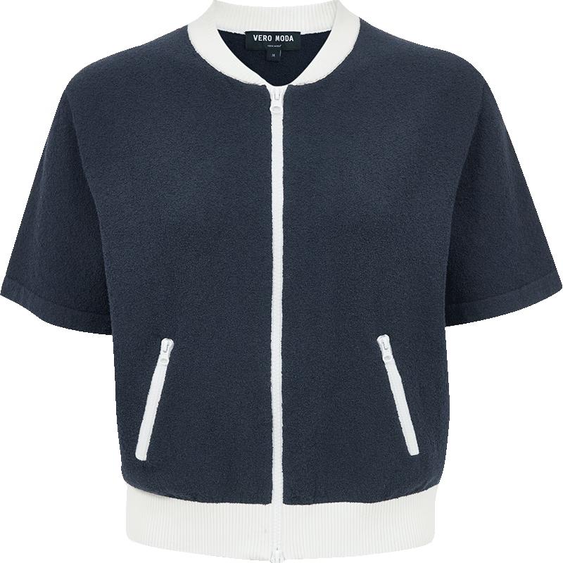 Veromoda Cotton Blend Colorblock Short Sleeve Knit Cardigan