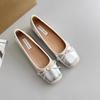 Inner Height Increase of 5 Cm~ Sweet Square Round Head Small Man Silver Light Mouth Bow Ballet Shoes Single Shoes