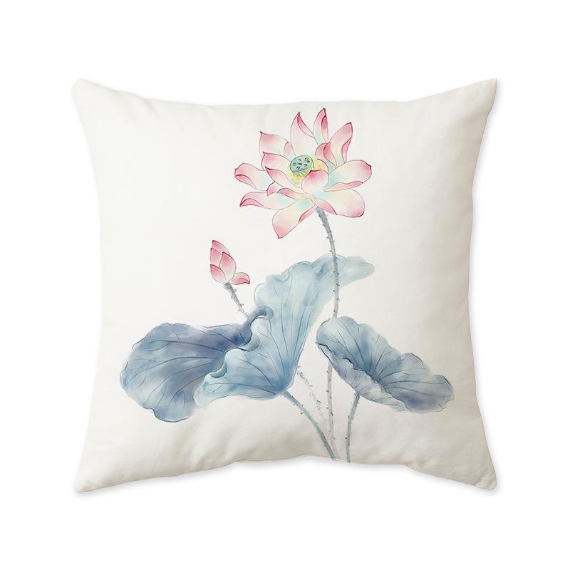 New Chinese Lotus Lotus Print Cushion Pillow Office Living Room Sofa Nap Cushion Pillow Cover