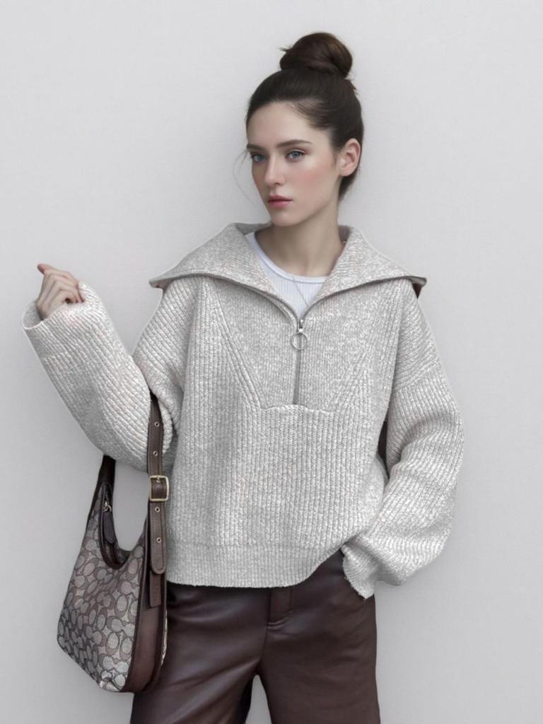 2025 Fall/Winter Women's High-End Half-Zip Pullover Sweater: Loose, Slimming Knit