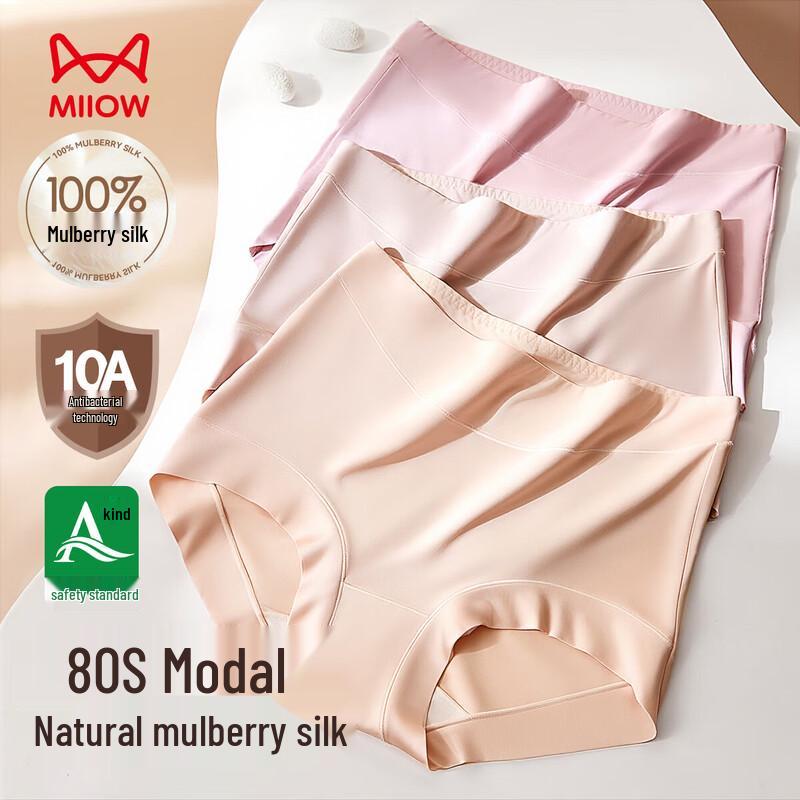 MIIOW Women's High-Waist Modal Tummy Control Briefs with 100% Silk Crotch