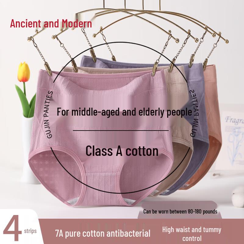 GUJIN Women's Pure Cotton High-Waist Tummy Control Briefs 4-Pack