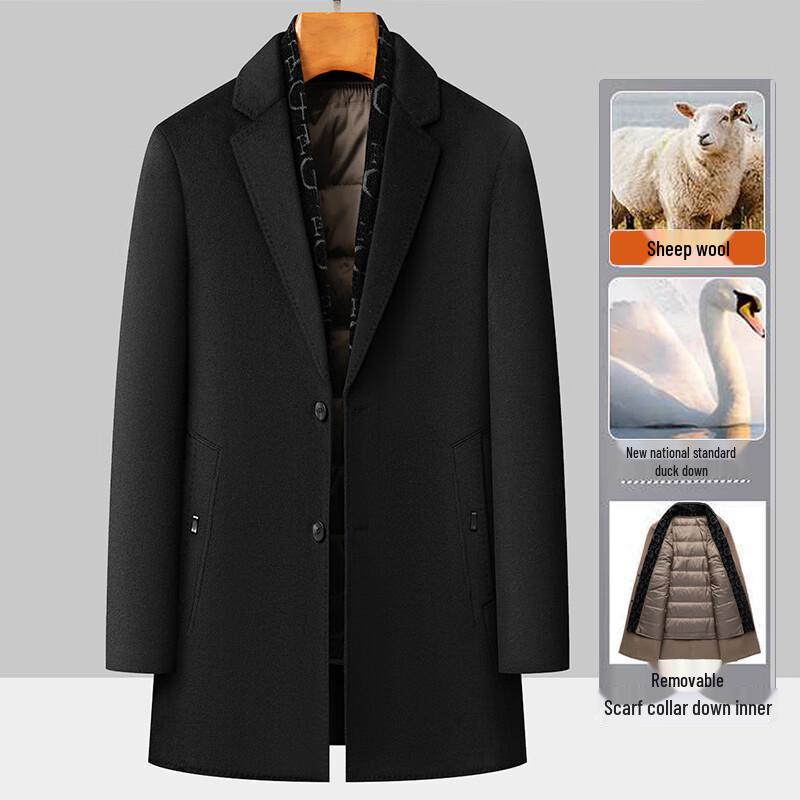 Men's Wool Blend Blazer Collar Overcoat with Detachable Down Liner