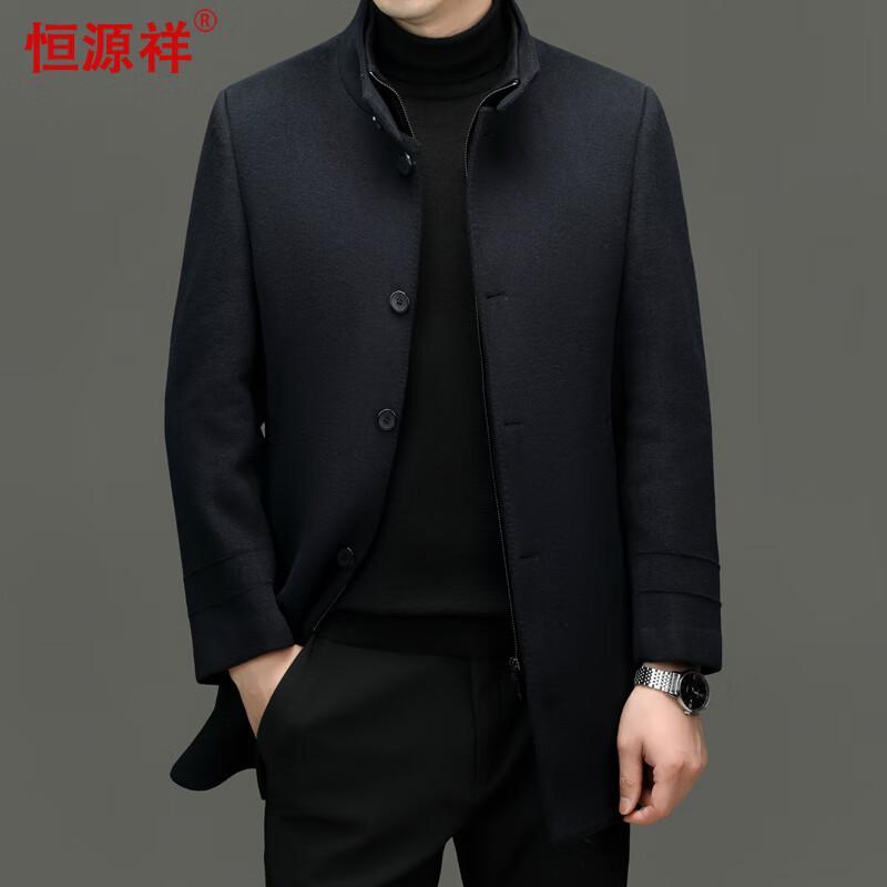 Hengyuanxiang Men's Detachable Down Liner Double-Faced Wool Blend Coat