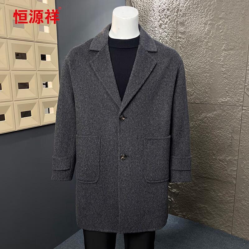 Hengyuanxiang Men's 100% Merino Wool Double-Faced Overcoat