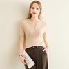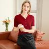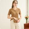 TUHUANG Women's Merino Wool Ribbed Knit V-Neck Short Sleeve T-Shirt