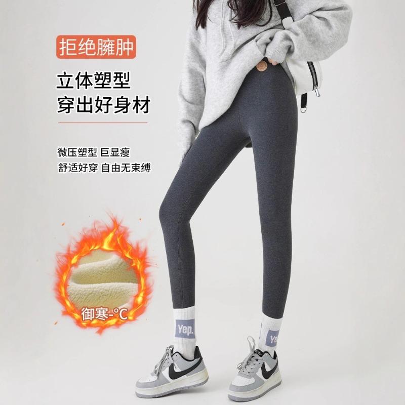 Lamb Wool Nine-point Leggings Can Be Worn Outside, High Waist, High Elastic and Tight, Thin Autumn and Winter Women's Thermal Pants