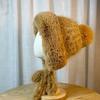 Winter Plush Brown Knitted Lei Feng Hat for Women Double Sided Velvet Warm Ear Protection Hat Versatile and Sweet Pullover