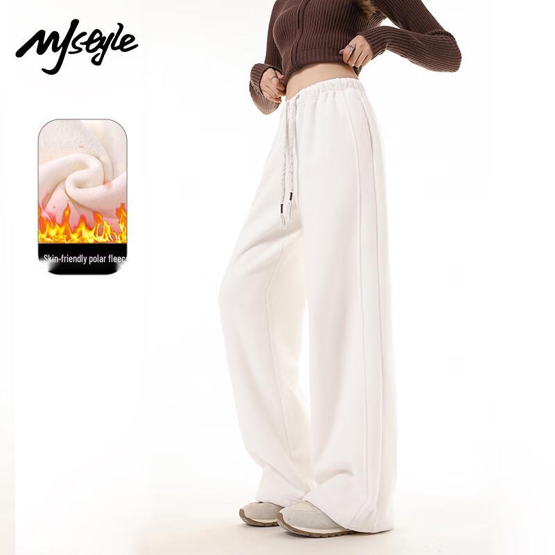 MJ STYLE Women's Double-Sided Fleece Wide-Leg Sweatpants