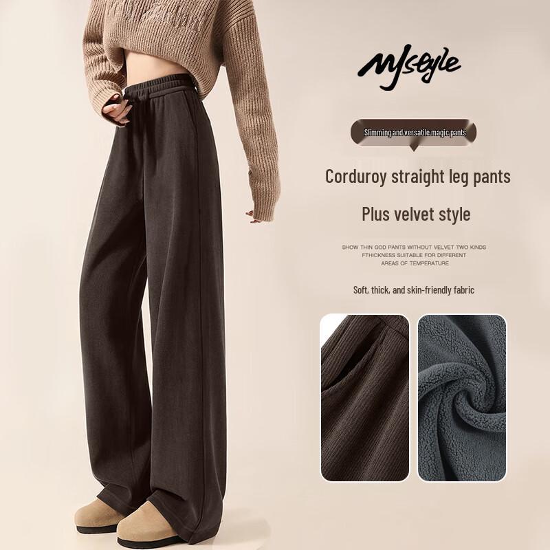 MJ STYLE Women's Winter Fleece-Lined Corduroy Straight Pants
