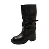 In Autumn and Winter 2025, the New Thick Sole Will Increase by 6cm~ Fashionable Belt Buckle Square Round Head Pleated Medium Tube Knight Boots Women