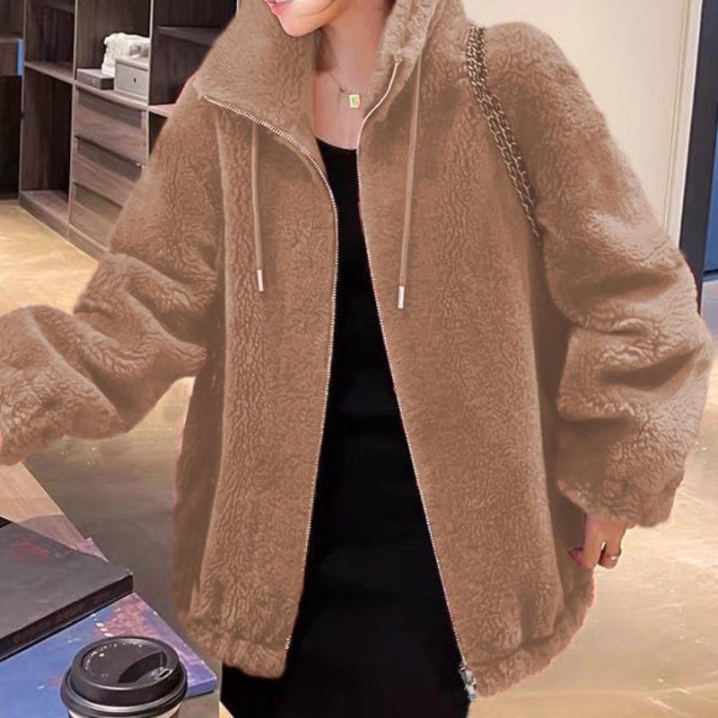Cardigan Jacket for Women's Autumn and Winter New Stand-up Collar Loose Velvet Thickened Thermal Zipper Sweater for Women