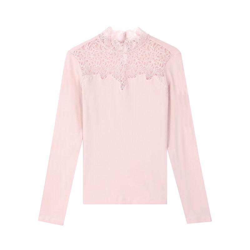 Anlifang Women's Semi-High Collar Lace Base Layer Top