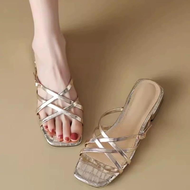 Shoes Woman 2025 Slippers Casual Heeled Mules Low Big Size Shale Female Beach Luxury High Sabot Silver Rubber Rome PU Fabric Pum