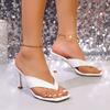 Sexy Square Toe Alligator Pattern Flip Flops Women 2025 Summer Solid Black Super High Heels Slippers Party Dress Shoes