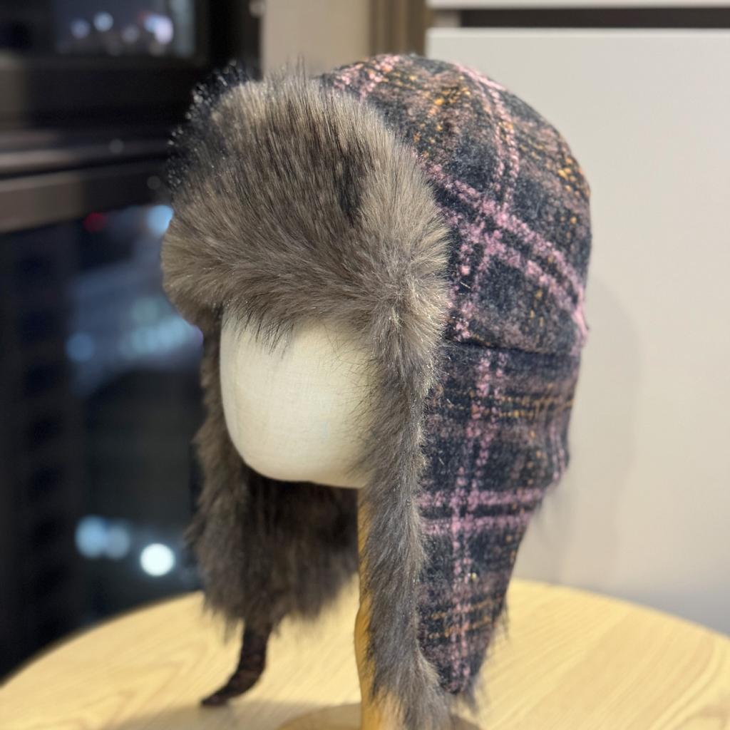 New Plush Plaid Lei Feng Hat Women's Winter Outdoor Cycling Ear Protection Hat Showing Face Small Cold Protection Thickened Warm Hat