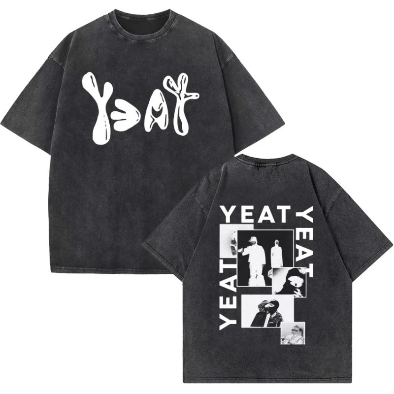 Rapper Yeat Lyfestyle Vintage Washed T Shirt Men Women Hip Hop Fashion High Quality T-Shirts Casual Oversized T-shirt