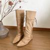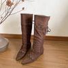 "Wasteland Spice Girls" Inner Heightening Western Cowboy Boots Women's Autumn and Winter Pile Boots Lace-up Skinny Knee Boots