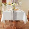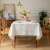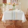 Embroidered Plaid Flower Tassel Tablecloth Rectangular Coffee Table Anti-fouling Decorative Tablecloth Tablecloth