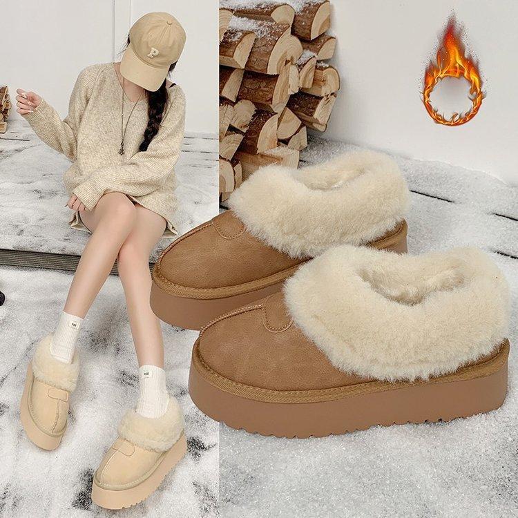 Thick-soled Snow Boots, Piled and Thickened One-pedal Low-top Cotton Shoes 2025 New Winter Fluffy Shoes, Bread Shoes