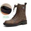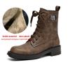 Krazing Pot Genuine Leather Winter Round Toe Western Boots Med Heels Women Cross-tied Lace Up Women Ankle Boots