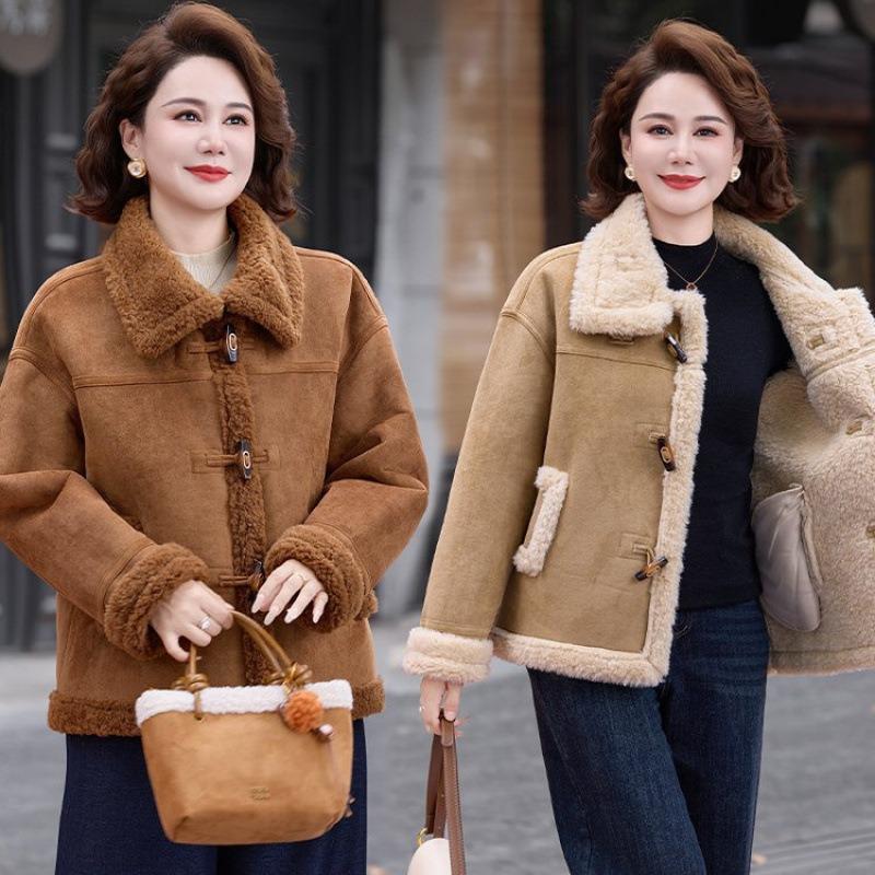 Middle-aged and Old Women's Loose Coat, Young Women's Fur Integrated Top, Elegant and Comfortable Mother's Warm Short Coat