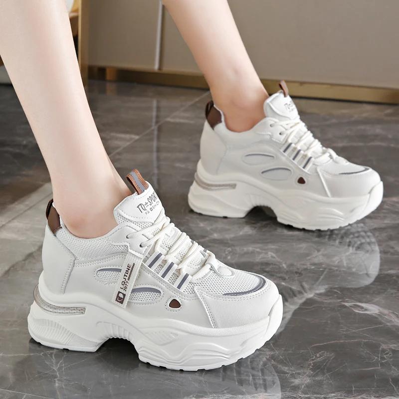 Women's White Platform Sneakers Breathable Mesh Running Shoes for Mujer Thick Bottom Non Slip Casual Sports Sandals Chaussure