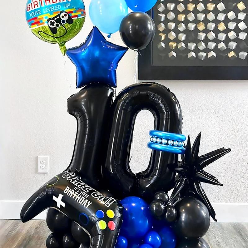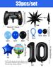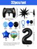 1set Video Game Theme Number Birthday Set Game Controller Balloons Black 1-15 Number Balloons Gamer Kids Birthday Party Decors