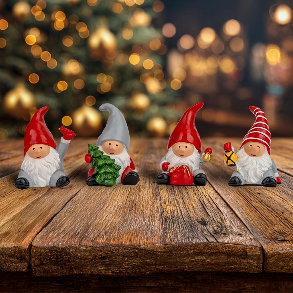 4PCS/set Christmas Ornament Mini Resin Old Man Snow House Saint Christmas Tree Small Pendant Holiday Party Birthday Best Gifts