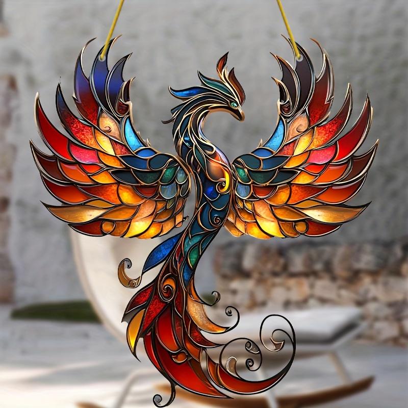2D Aurora Phoenix Acrylic Light Catcher Solar Catcher Hanging Home Decor Auspicious Phoenix Theme Bedroom Garden Gift