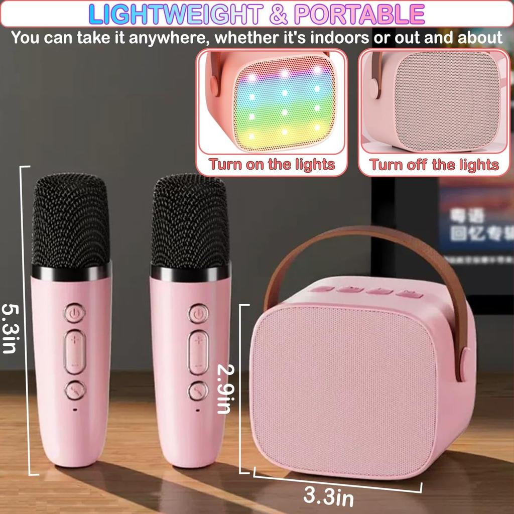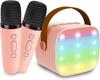 Mini Karaoke Machine, Bluetooth Speaker with 2 Wireless Microphone & LED Lights, Christmas Birthday Gifts for Girls Boys Adults