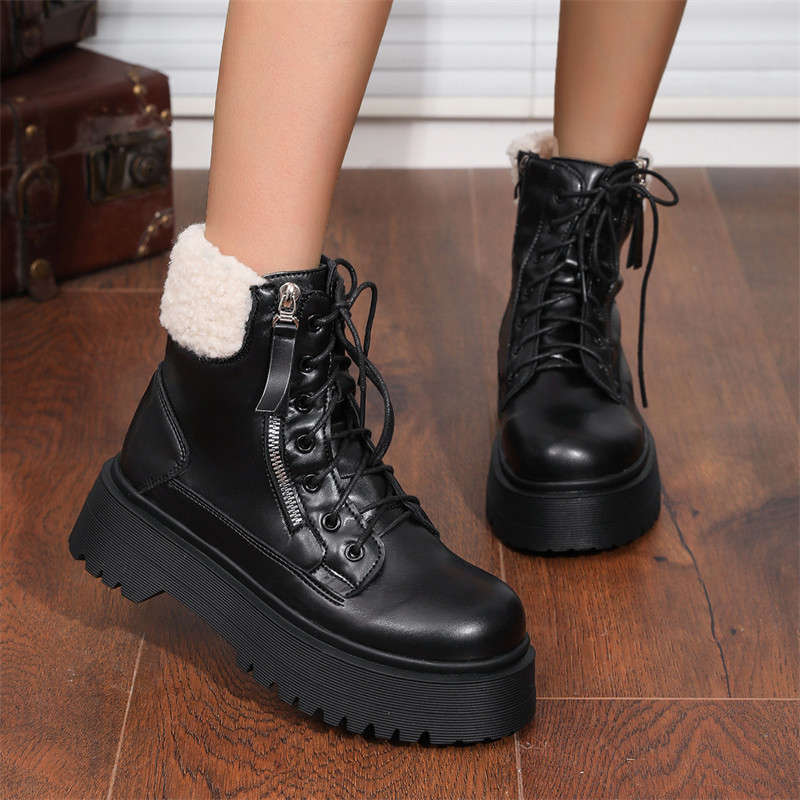 Retro Round-headed Martin Boots Women's Winter Velvet Thickened Warm Snow Boots New Thick-soled Cotton Shoes
