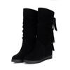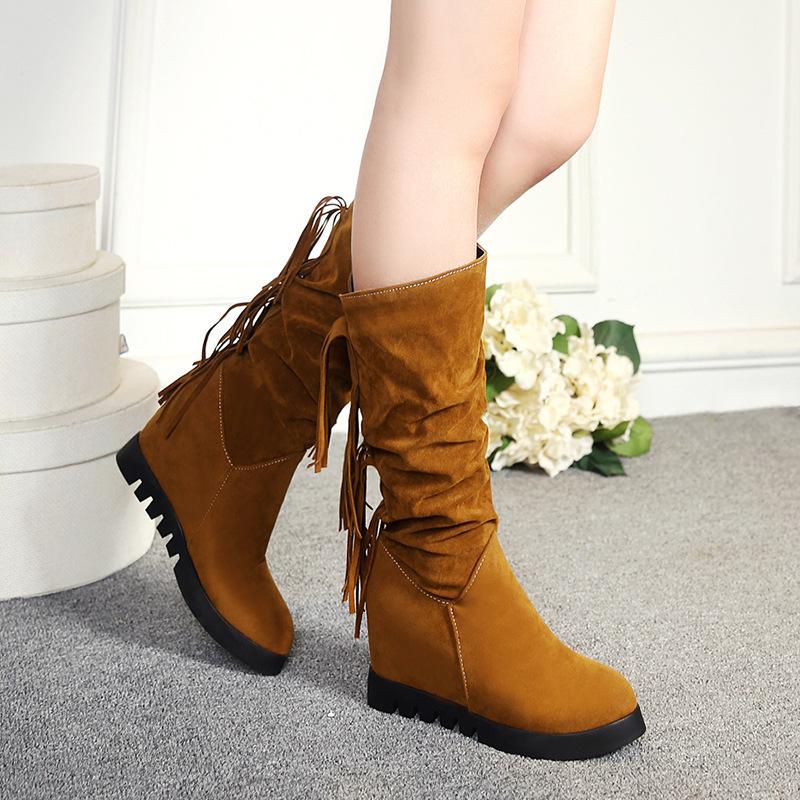 New Inner Water Platform Wedge Heel High Heel Casual Boots Medium Tube Fringed Boots Cotton Boots Large Size Boots