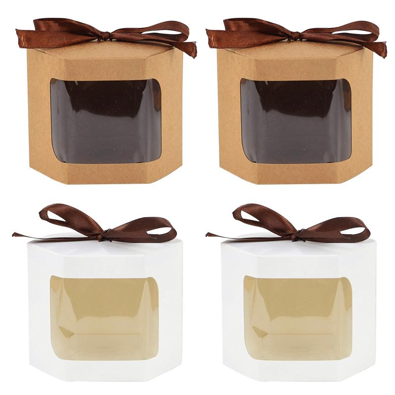 10Pcs Kraft Paper Candy Gift Box with Window Ropes Cake Chocolate Packaging Boxes Wedding Favors Birthday Party Supplies