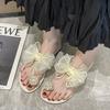 2025 New Fashionable Fairy Style Pearl Bowknot Sandals Women's Outdoor Beige Slip-On Slippers Korean Version Rubber Sole Shoes