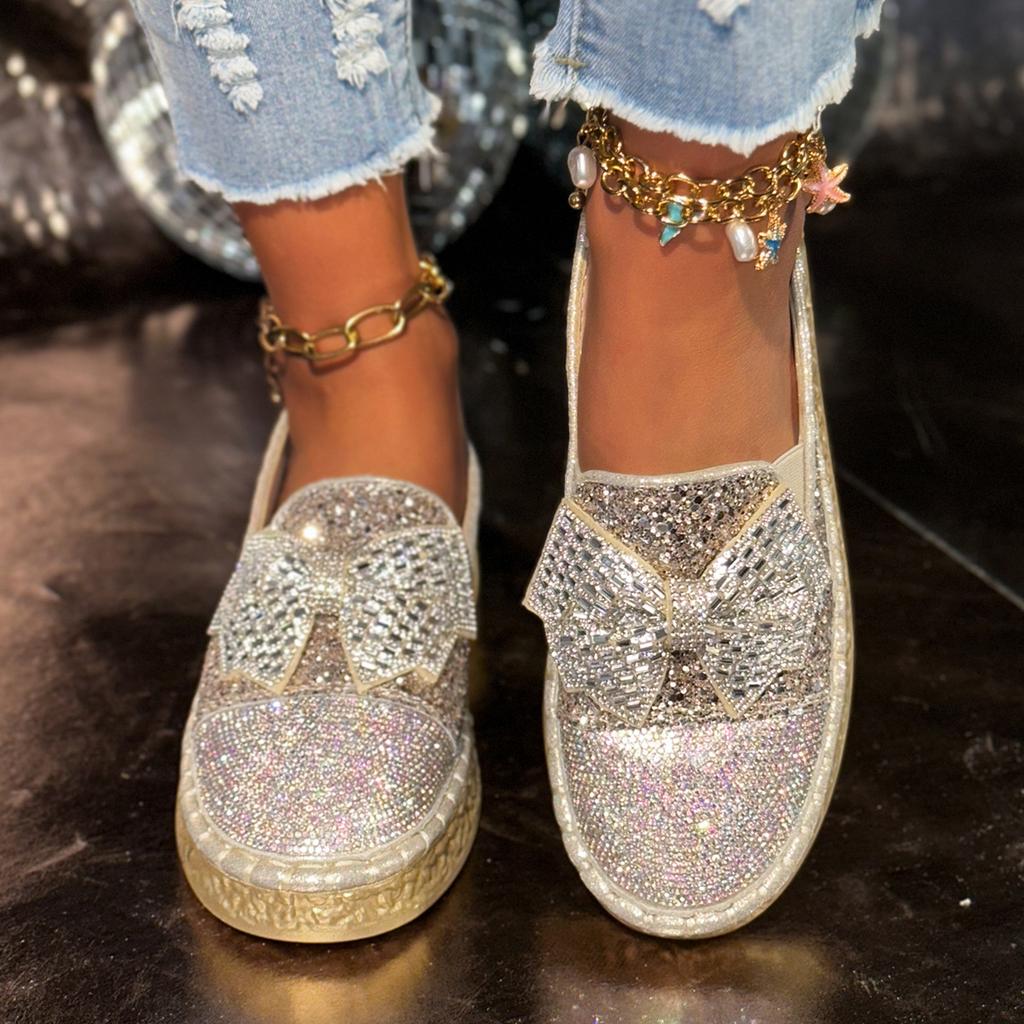 Aphixta Silver Bling Loafers Platform Butterfly Knot Dec Woman Shoes Spring Autumn Woman Chunky Heel Shoes Slip On Footwear