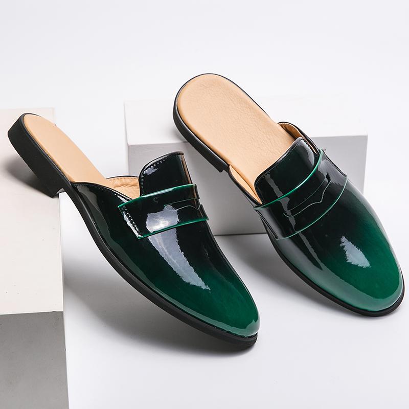 New Men Half Slippers Loafers Casual Summer Shine Patent Leather Mules Moccasins Classic Breathable Soft Slip On Driving Shoes