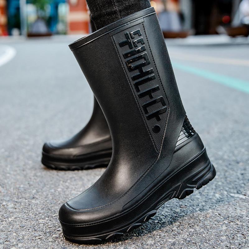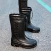 Men's Rain Shoes Waterproof Boots Comfortable Mid Calf Boots Rainproof Work Water Shoes Non-Slip Drawstring Rubber Boots