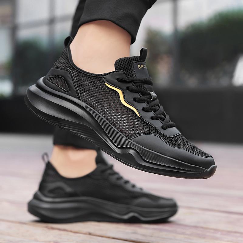 Men's New Sports Hollowed Out Breathable Thick Soled Brand Sports Lace Up Outdoor Anti Slip Mesh Platform Running Shoes